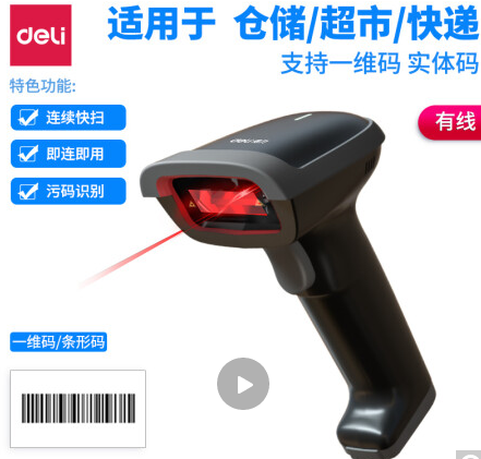 當(dāng)前位置: 首頁 > 辦公耗材 > 得力(deli)14880S有線一維激光掃描槍