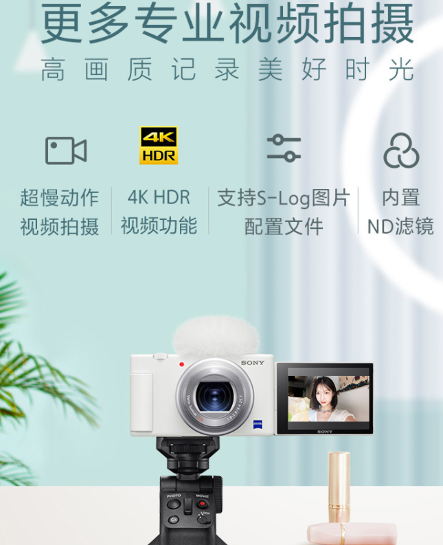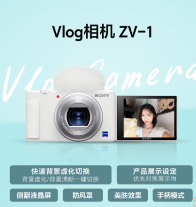 索尼(SONY)ZV-1 Vlog相機 4K視頻/美膚拍攝/強悍對焦/學(xué)生/入門 (ZV1) 白色