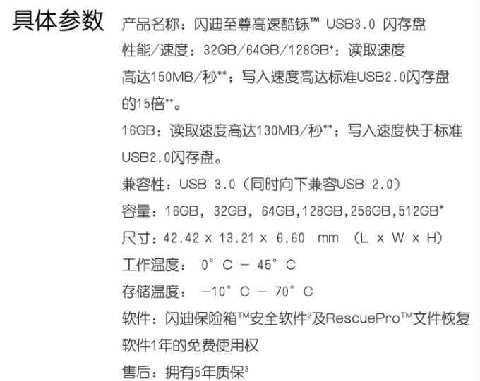 參數(shù) [品牌] 閃迪 [型號] 32GB USB3.0 U盤 CZ73酷鑠